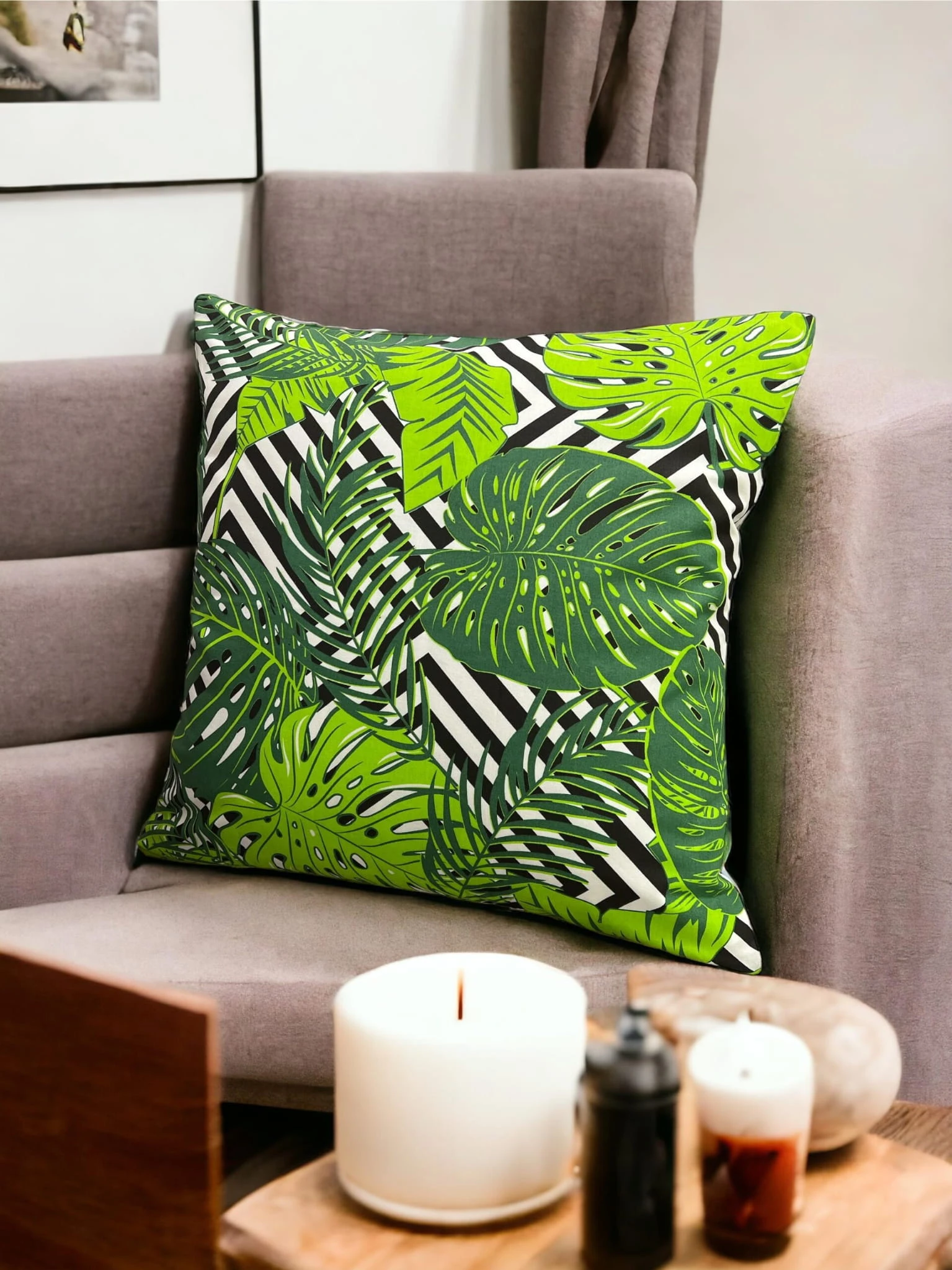- Stylowy design: Żywy motyw tropikalny na kontrastowym tle dodaje wnętrzu nowoczesności i świeżości