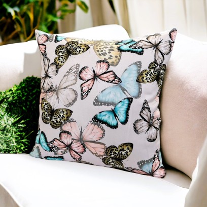 Przedstawiamy elegancką poszewkę z motylami, dekoracyjną wykonaną z wysokiej jakości poliestru, która wyróżnia się delikatnym motylkowym wzorem na beżowym tle. Ta poszewka z motywem motyli to idealny wybór dla osób pragnących wprowadzić do swojego wnętrza odrobinę lekkości i koloru. Motylkowy wzór w różnych odcieniach, takich jak niebieski, różowy i żółty, nadaje jej wyjątkowego uroku.