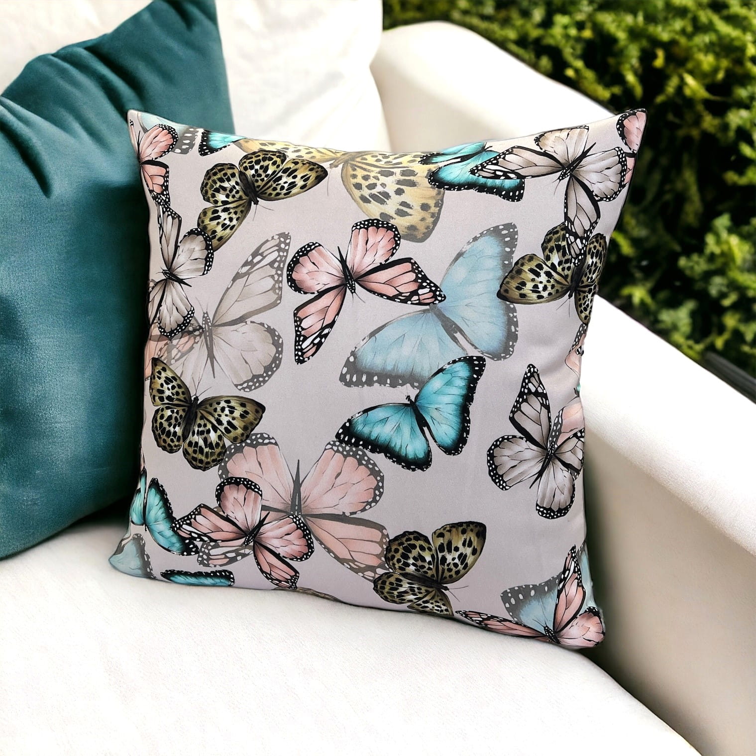 Stylowa poszewka dekoracyjna z poliestru - motylkowy wzór na beżowym tle