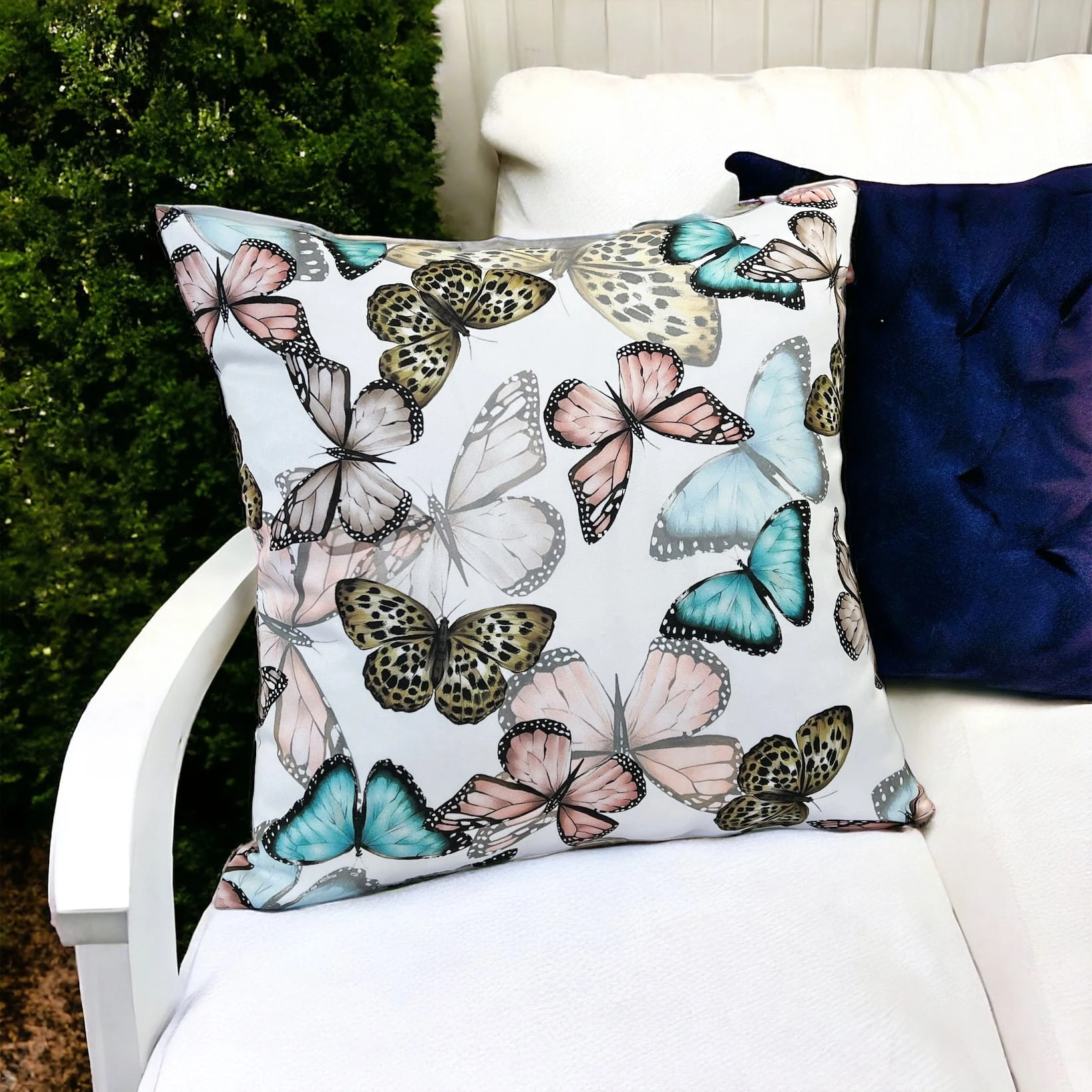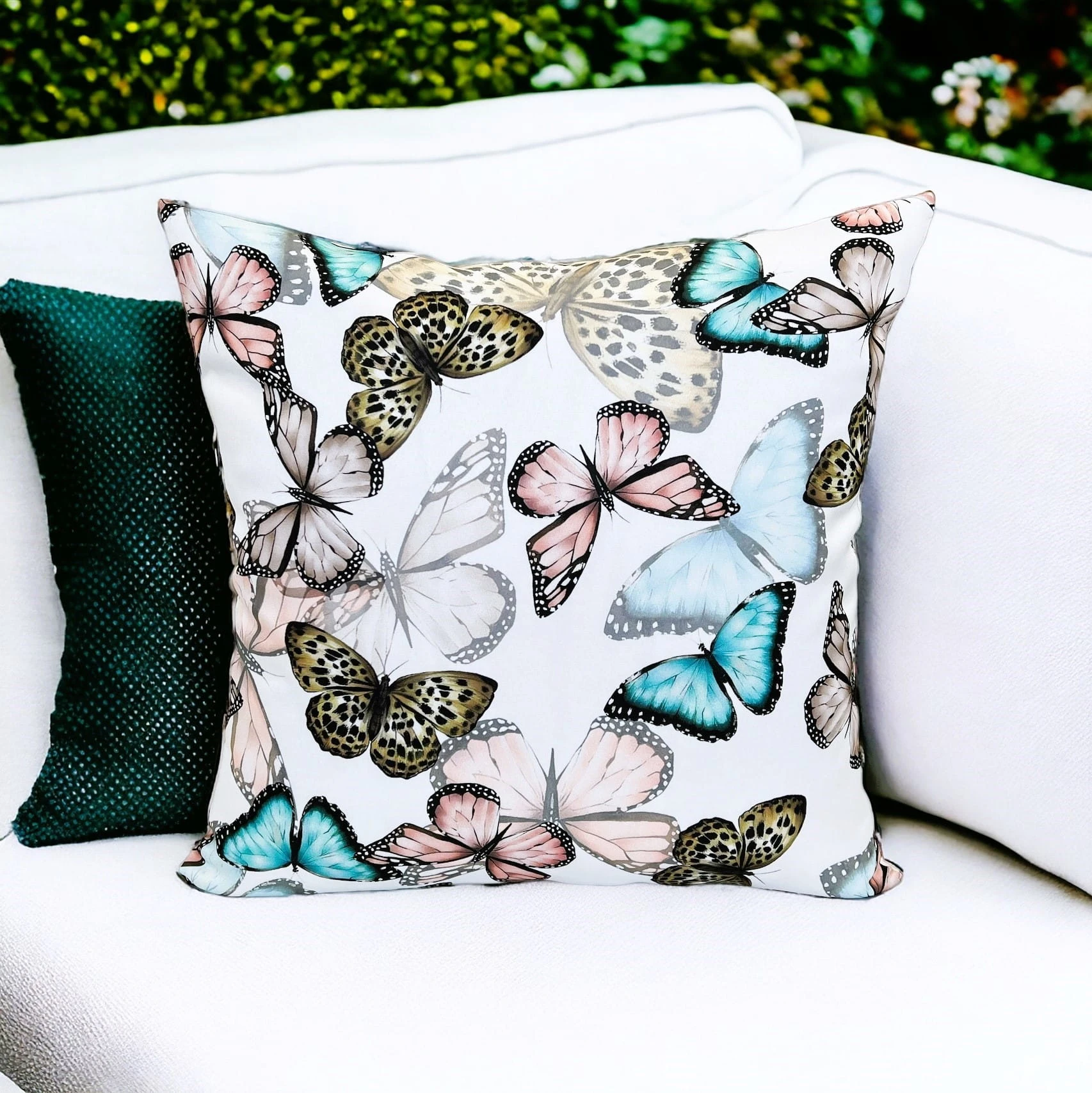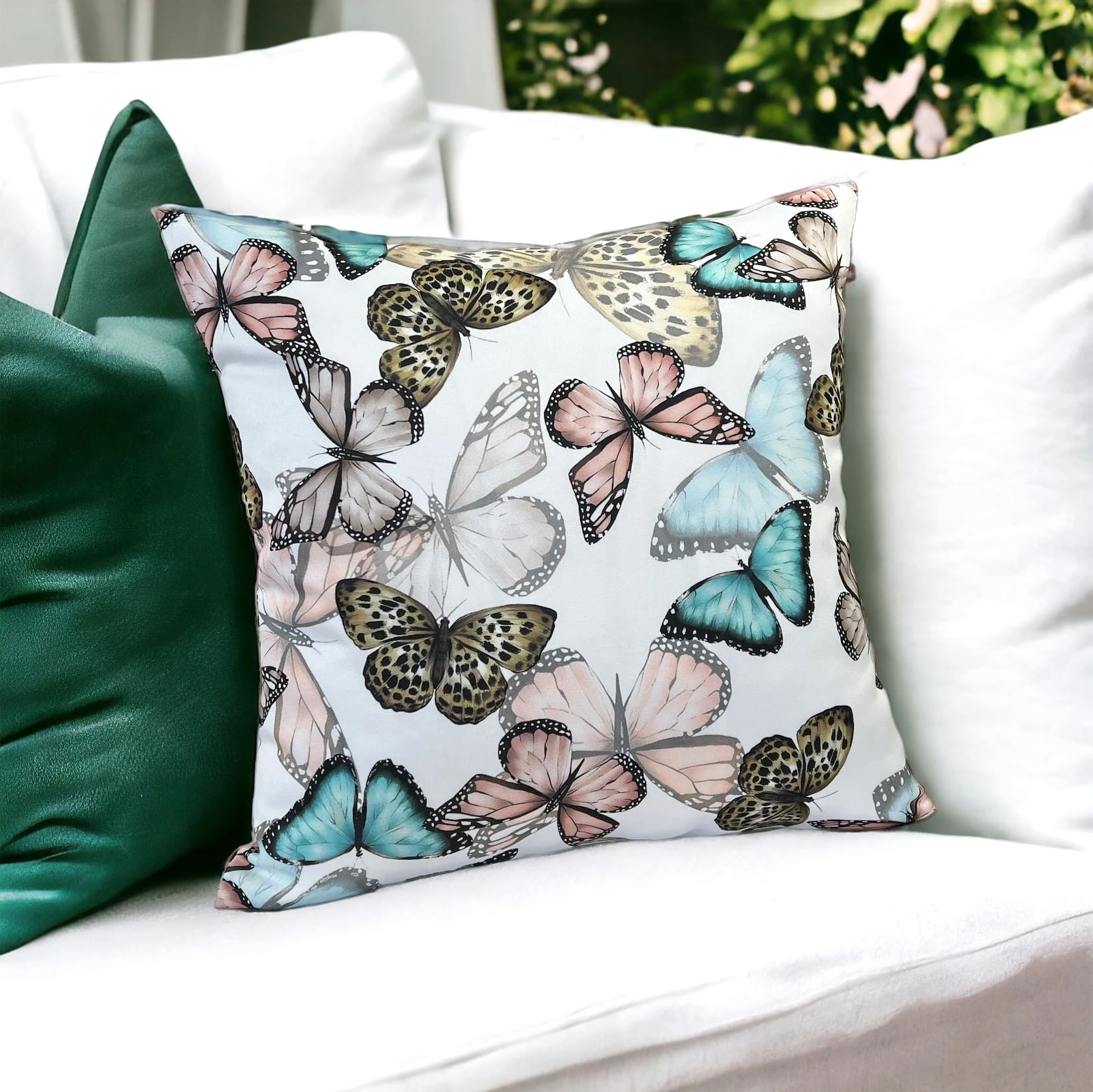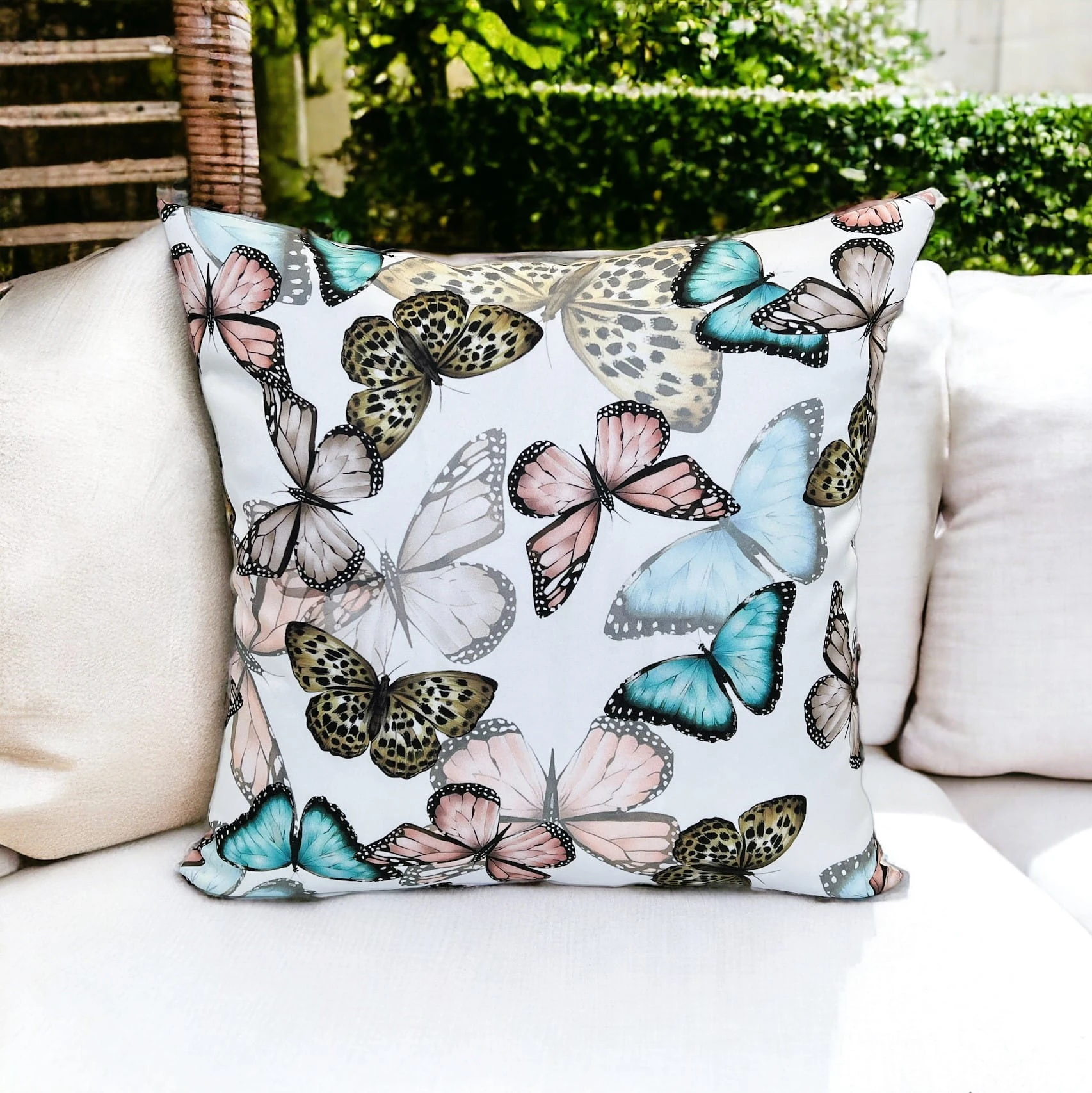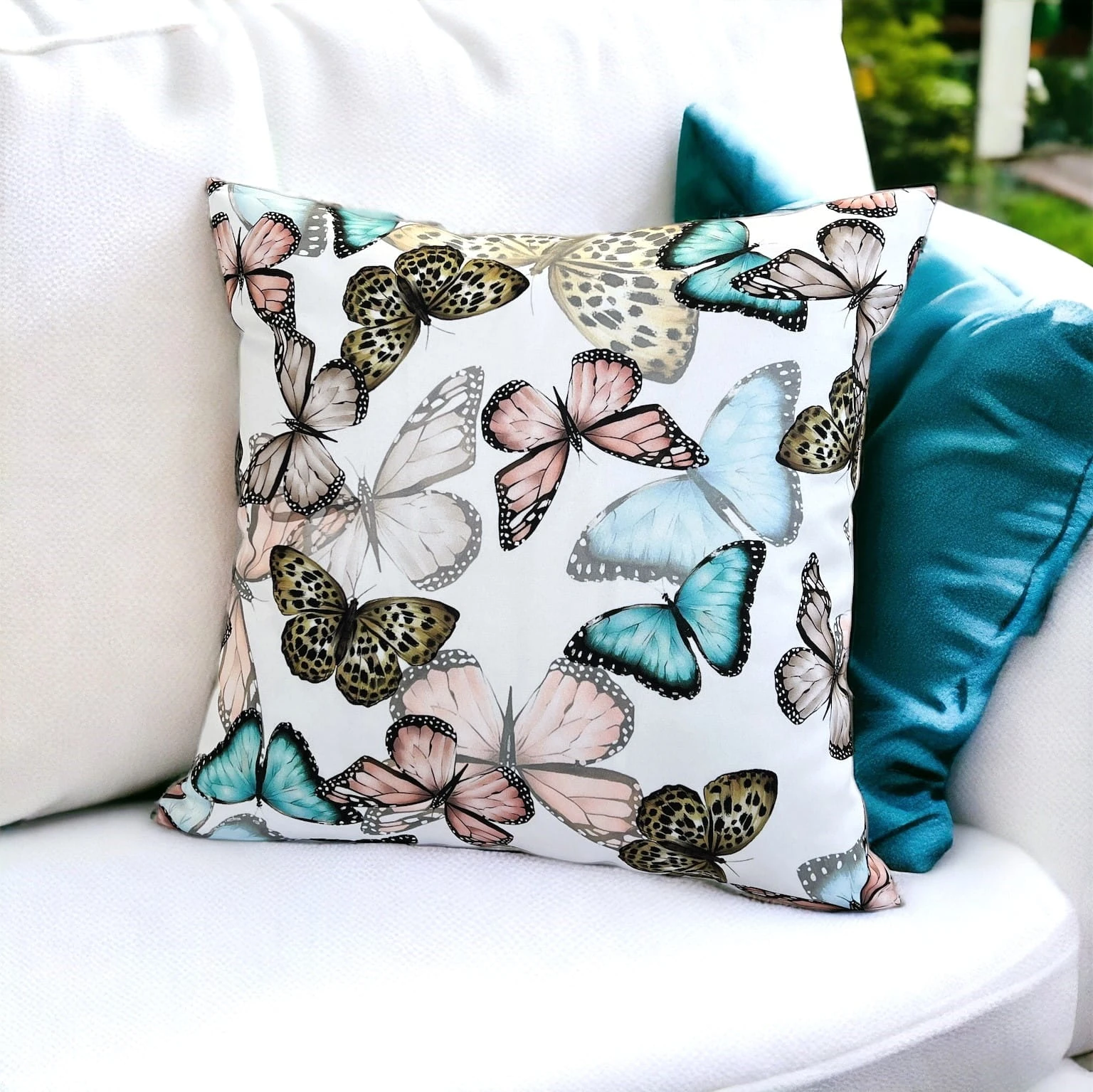 Stylowa poszewka dekoracyjna z poliestru - motylkowy wzór na bieli