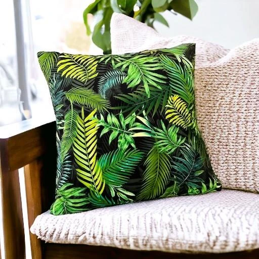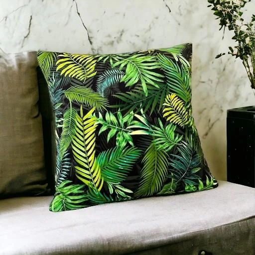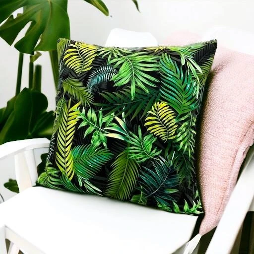 Prezentujemy luksusową welurową poszewkę dekoracyjną, która wyróżnia się żywym motywem zielonych liści na ciemnym tle. Dzięki swojemu unikalnemu designowi, ta poszewka doskonale sprawdzi się w każdym wnętrzu, wprowadzając do niego odrobinę natury oraz egzotyki.