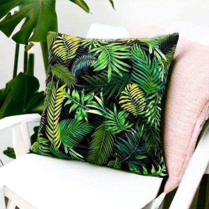 Dodaj świeżości i egzotycznego klimatu swojemu wnętrzu dzięki tej welurowej poszewce dekoracyjnej z motywem zielonych liści. Poszewka charakteryzuje się przede wszystkim intensywnymi kolorami oraz wyjątkowym wzorem, który nadaje jej stylowy i elegancki wygląd.